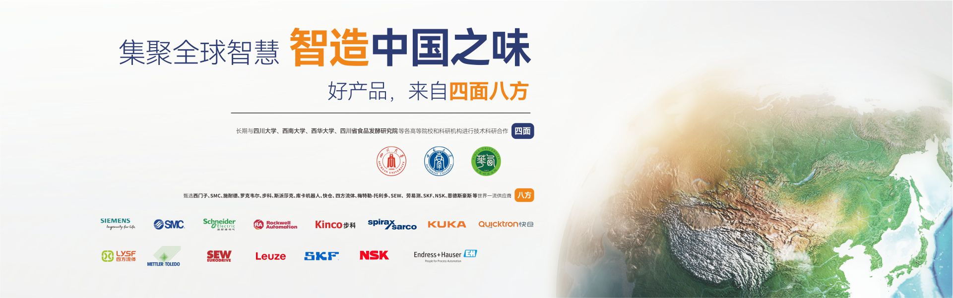 成都海科機(jī)械設(shè)備制造有限公司(簡稱:成都海科)是一家集研發(fā)、生產(chǎn)、銷售、服務(wù)為一體,專注為中國傳統(tǒng)食品行業(yè)提供自動化、智能化、數(shù)字化、智慧工廠整體解決方案的國家級高新技術(shù)企業(yè)。公司擁有標(biāo)準(zhǔn)化辦公樓及現(xiàn)代化生產(chǎn)車間約42000m2,具有較強(qiáng)的綜合研制、設(shè)計開發(fā)、生產(chǎn)能力,具備嚴(yán)格的質(zhì)量管理體系和完善的售后服務(wù)體系。公司業(yè)務(wù)范圍覆蓋:復(fù)合調(diào)味品智能生產(chǎn)線、中式醬鹵肉制品智能生產(chǎn)線、醬腌菜智能生產(chǎn)線、智慧餐廚、央廚預(yù)制菜調(diào)理智能生產(chǎn)線,與海底撈、天味、九毛九、聚慧、楊國福、絕味、雙匯、新希望、無窮、烏江、吉香居、仲景、李記樂寶、Tyson、益海嘉里、開小灶、老鄉(xiāng)雞等眾多知名企業(yè)合作。截止目前,成都海科已經(jīng)助力超2000+企業(yè)順利投產(chǎn)5000余條生產(chǎn)線,為客戶創(chuàng)造年產(chǎn)值超1000億元!